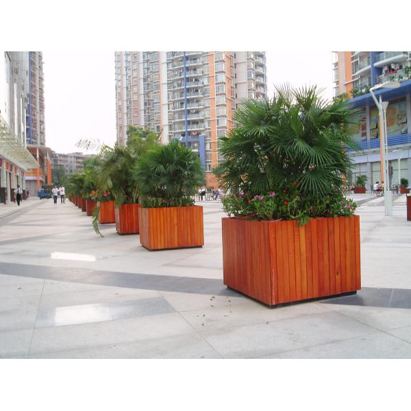 Waterproof Outdoor Large Planters , Steel And Solid Wood Square Flower Pots Images |